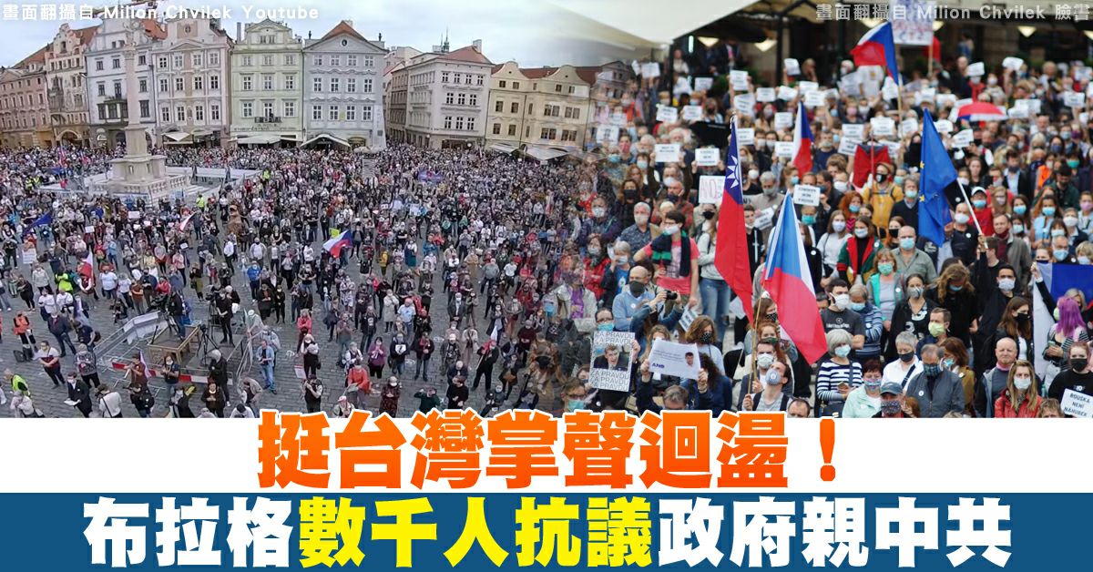 布拉格數千人反親中共政府!舉中華民國旗謝台灣