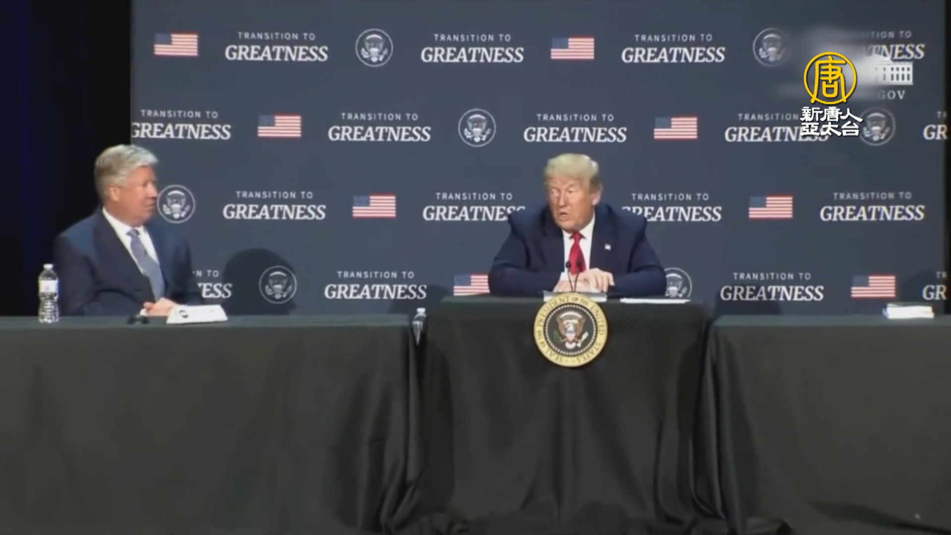 美國總統 川普:「我叫它『源自中國的瘟疫』,瘟疫,它很不好,本可以被遏制,在中國就被遏制,但他們(中共)決定不那麼做,所以我們必須解決這個問題。」