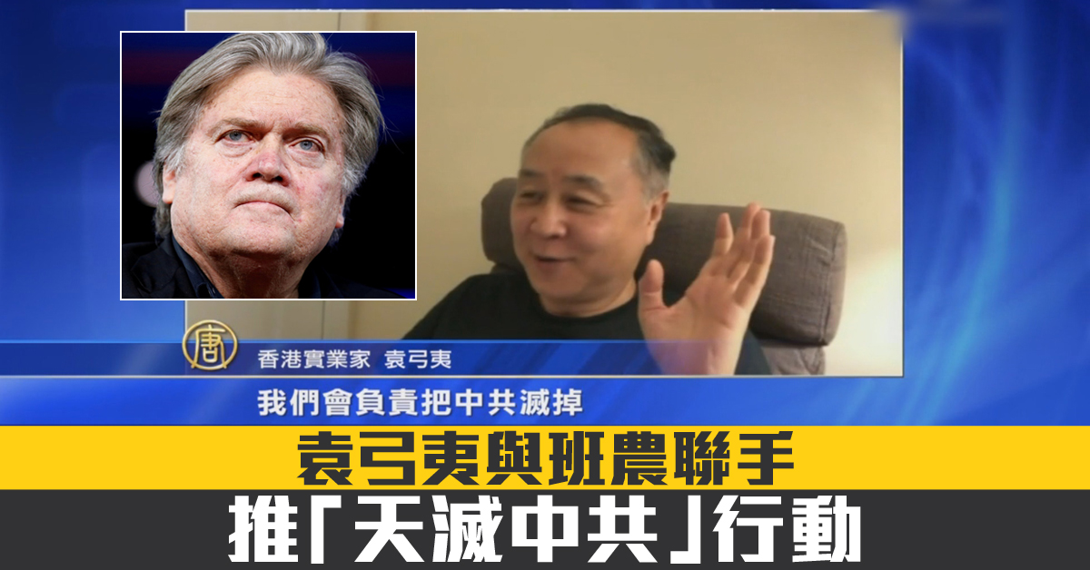 曾在中港上市的香港知名實業家袁弓夷,一個月前毅然斷掉所有大陸生意,公開反共,並專程赴美,呼籲救助香港年輕人。他日前和前白宮策略師班農見面,並宣布攜手推「天滅中共」行動。