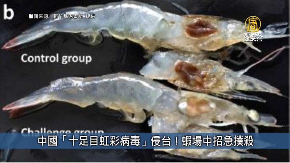 中國今年4月底傳出沿海蝦子感染「十足目虹彩病毒」,造成蝦子大量死亡,台灣蝦苗雖是從泰國越南進口,未直接中國進口,但農委會也趕在5月22日公告「十足目虹彩病毒之指定輸入應施檢疫物及檢疫措施」,5月29日起進口蝦需檢驗此項病毒,沒想到仍舊無法防堵,不到半個月就在新竹一螯蝦場確診已全面清除銷毀,新北市一白蝦場疑感染,農委會也緊急檢測全台養蝦場。