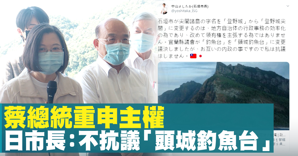 【新唐人亞太台 2020 年 06 月 16 日訊】關注釣魚台爭議,日本石垣市計畫22日變更日方名稱尖閣群島為「登野城尖閣」引發議論。中華民國總統蔡英文重申主權與區域穩定,國民黨喊話。日方石垣市長15日表示,改名是為了行政效率、不是為了主張主權,他不會抗議宜蘭縣改名「頭城釣魚台」。
