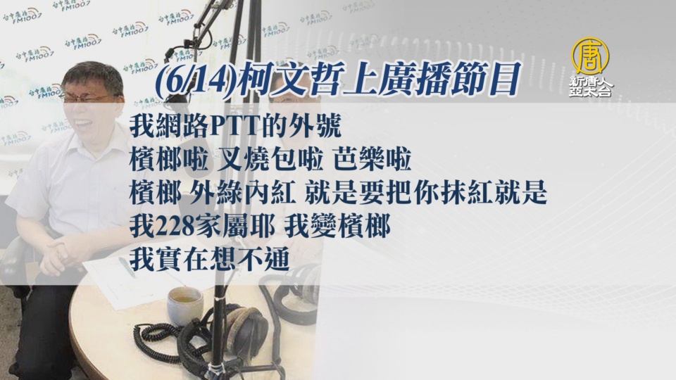 台北市長 柯文哲:「我網路PTT外號,檳榔叉燒包啦芭樂啦,檳榔外綠內紅,就是要把你抹紅就是了。」