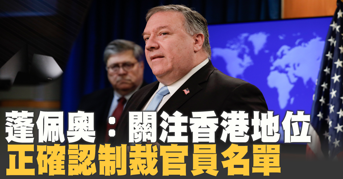 蓬佩奧:關注香港9月選舉 正確認制裁官員名單