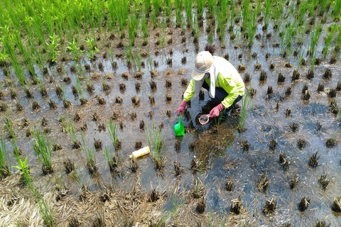 針對已查獲孳生三斑家蚊的水稻田進行蘇力菌生物防治滅蚊(高雄市衛生局提供)