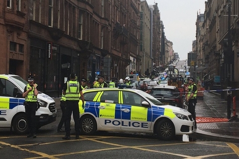 英國蘇格蘭格拉斯哥市區(26日)驚傳一名兇手持刀揮舞至少3人被刺死,6人受傷,包含一名員警被捅傷,目前兇手已被警方擊斃。(翻攝推特)
