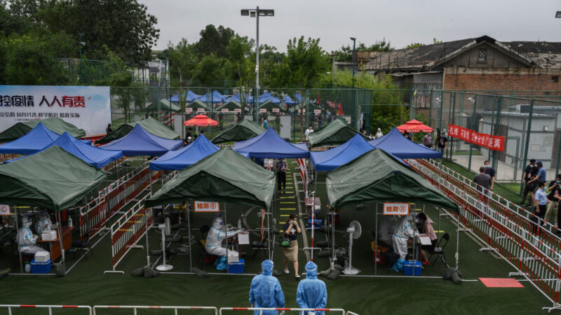 安新縣此次疫情由北京新發地疫情引發。圖爲北京一處核酸檢測現場。(Kevin Frayer/Getty Images)