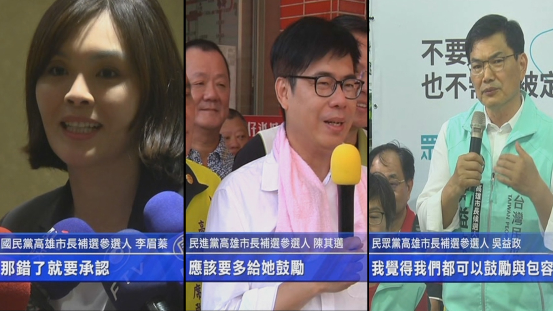 就連對手也幫緩頰,不過接下來一個多月的競選策略與發言人,三路兵馬各有城府,傳出「雙帥」可能在高雄打延長賽,李眉蓁找蔣萬安,陳其邁則有吳怡農擔任顧問。