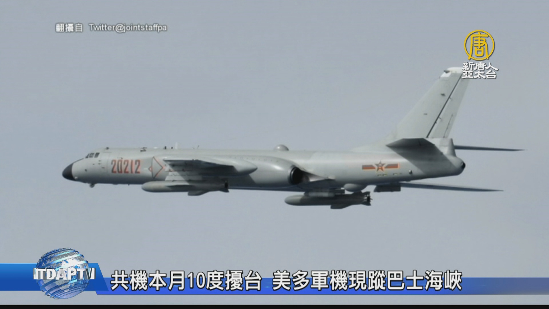 【新唐人亞太台 2020 年 06 月 29 日訊】好,除了南海,中共軍機昨天(28日)再度接近台灣外圍空域!日本防衛省統昨天主動發布訊息指出,中共兩架「轟六」戰機取道宮古海峽,在台灣東部外圍空域、防空識別區以外折返後,循原路返航。日本派戰機升空監控,國軍也嚴密掌握共機動態。另外,美軍P-8A海神偵察機、C-40A運輸機、空中加油機、R電偵機今天紛紛現蹤巴士海峽,目標都飛往南中國海。這是美軍軍機連續第9天在台灣周邊空域,被認為是反制中共,並在海、空域搜集相關的電子訊號。