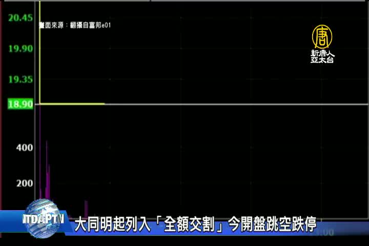 【新唐人亞太台 2020 年 07 月 01 日訊】大同經營權之爭,昨天股東會上,公司派取消超過5成市場派股權的表決權,拿下全數9席董事,引發爭議。上午一開盤,大同股價就隨著投資信心大跳水,直接打入跌停價。證交所認為,大同在昨天晚間的重訊記者會沒能給合理解釋,除了影響股東權益,也違反公司治理股東行動主義,將大同有價證券從明天7月2日起變更交易方法為全額交割。
