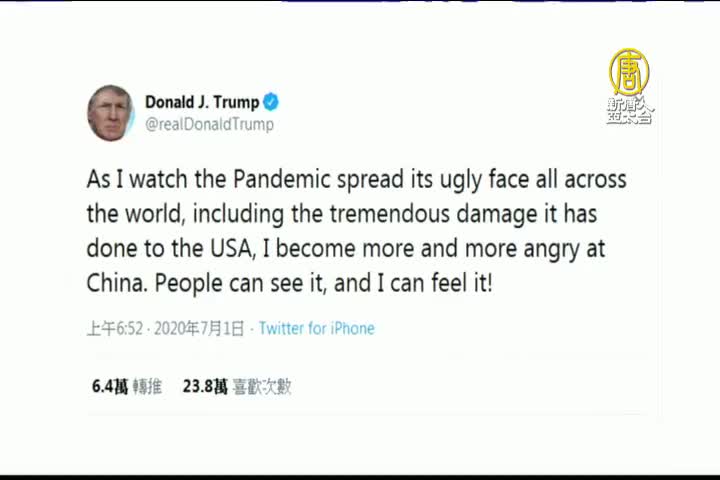 【新唐人亞太台 2020 年 07 月 01 日訊】好,追蹤美國疫情,境內確診數突破260萬例,疫情持續在多個州復燃。美國總統川普昨天在推特上表示,看到疫情在全球展露的醜陋面貌,包括帶給美國的嚴重傷害,都讓他對中共感到「越來越憤怒」。