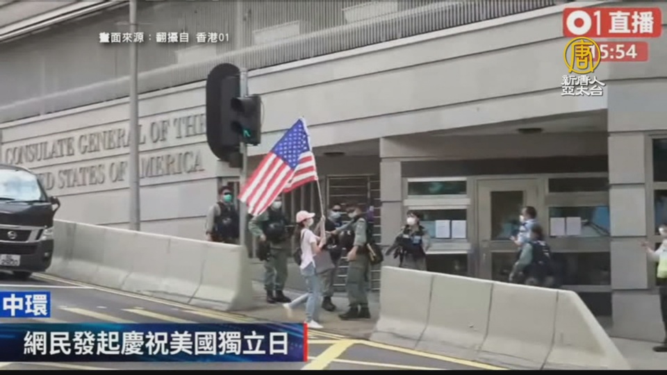 【新唐人亞太台 2020 年 07 月 04 日訊】今天是美國國慶日,有香港網友發起在這一天,到美國駐港總領事館集會。不少港人舉著美國國旗,期間有市民遭到警方截查,
