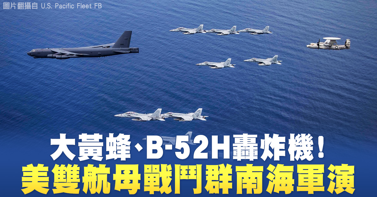 大黃蜂、B-52H轟炸機!美雙航母戰鬥群南海軍演