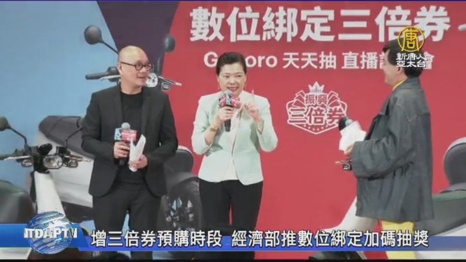 【新唐人亞太台 2020 年 07 月 06 日訊】歡迎回來,三倍券預購開跑第六天,民眾預購踴躍,不過預約紙本的,與數位綁定人數卻差很大,將近700萬的預購人數中,只有約126萬人使用數位綁定,為此,經濟部祭出加碼優惠,只要使用數位綁定三倍券,從今天開始到15號,都會天天抽出一台電動機車,送給民眾。