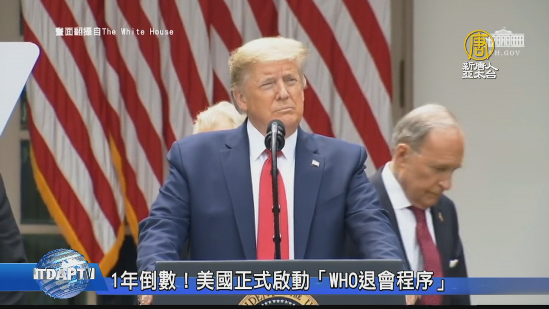 【新唐人亞太台 2020 年 07 月 08 日訊】再來看到,川普政府週一正式致函給聯合國,宣布正式退出世衛組織,將在明年七月生效。而共和黨參議員史考特,挺川普跨出重要一步,傳遞明確訊息,也就是美國不會花納稅人的任何一毛錢,用來支持替中國共產黨掩蓋疫情,對美國人沒有幫助的組織。