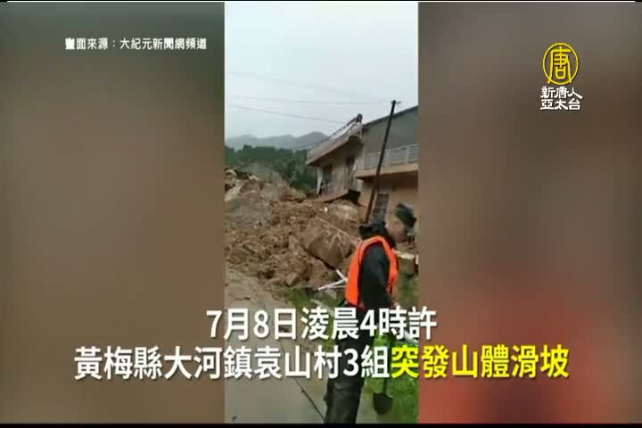 【新唐人亞太台 2020 年 07 月 08 日訊】中國長江流域連日暴雨,災情不斷。陸媒報導,今天上午10點,湖北省的黃石港監測站,長江水位已經24.51公尺,超過警戒水位。而湖北省黃梅縣華寧高中,近500位住校高校生,受困洪水無法及時到高考考場,同樣位在黃梅縣的大河鎮袁山村,今天凌晨4點更發生山體滑坡,多人被活埋。