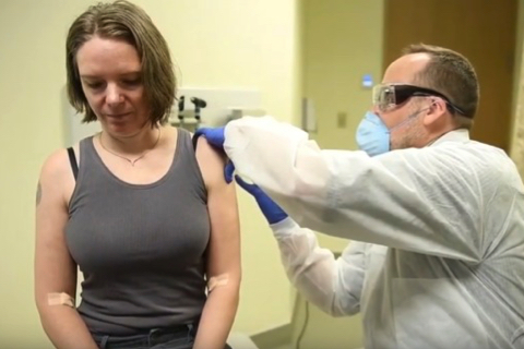 第一針試驗性的新冠疫苗被注射進了志願者體內(圖片來源:CDC視頻截圖)