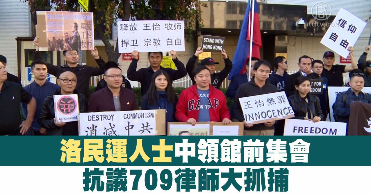 【新唐人亞太台 2020 年 07 月 11 日訊】中共709維權律師大抓捕事件,屆滿五年,7月9日,民運人士在美國洛杉磯中領館前抗議,公布中國律師惡況,呼籲向中共說不。