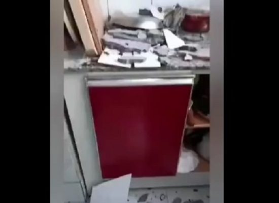7月12日,河北唐山發生5.1級地震,居民屋內牆壁瓷磚掉落一地。(視頻截圖)