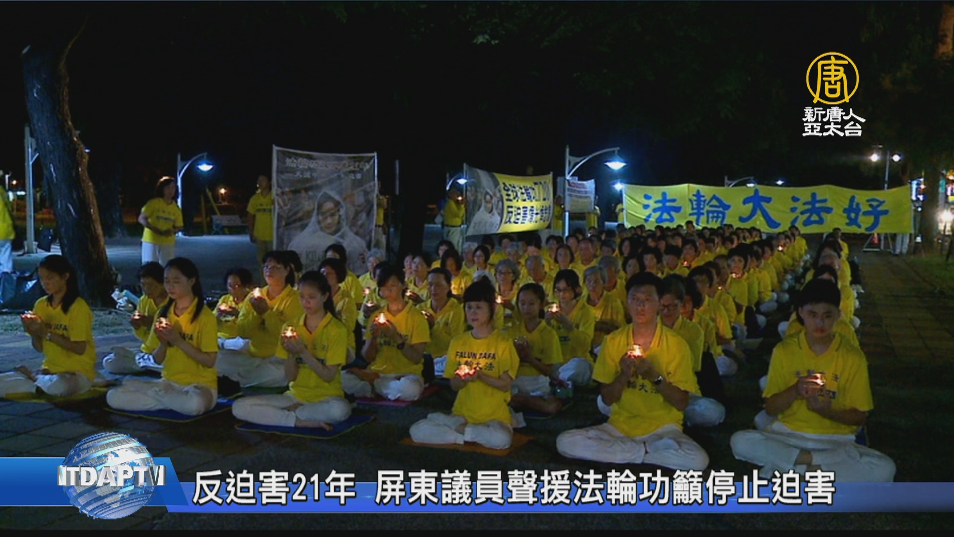 【新唐人亞太台 2020 年 07 月 13 日訊】中共自1999年7月20起,發動對中國法輪功修煉者大規模殘酷迫害,至今已長達21年,週六(11日)在屏東千禧公園,有近200名法輪功學員舉辦反迫害燭光悼念晚會,現場多位議員及社團領袖也到場聲援,呼籲認清中共本質,制止迫害。
