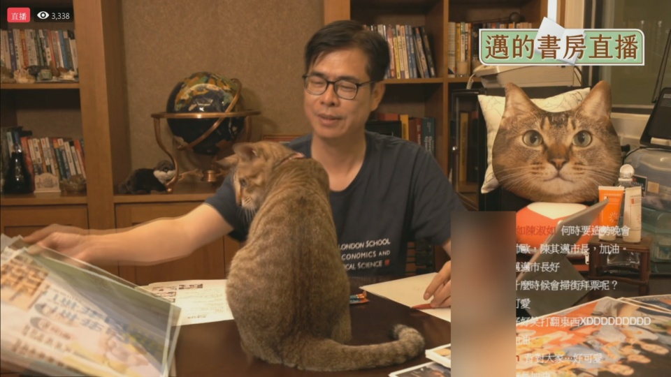 前一晚,陳其邁再次開啟書房直播,但因為抱著愛貓小米,風采全被搶走,主角變成小米。