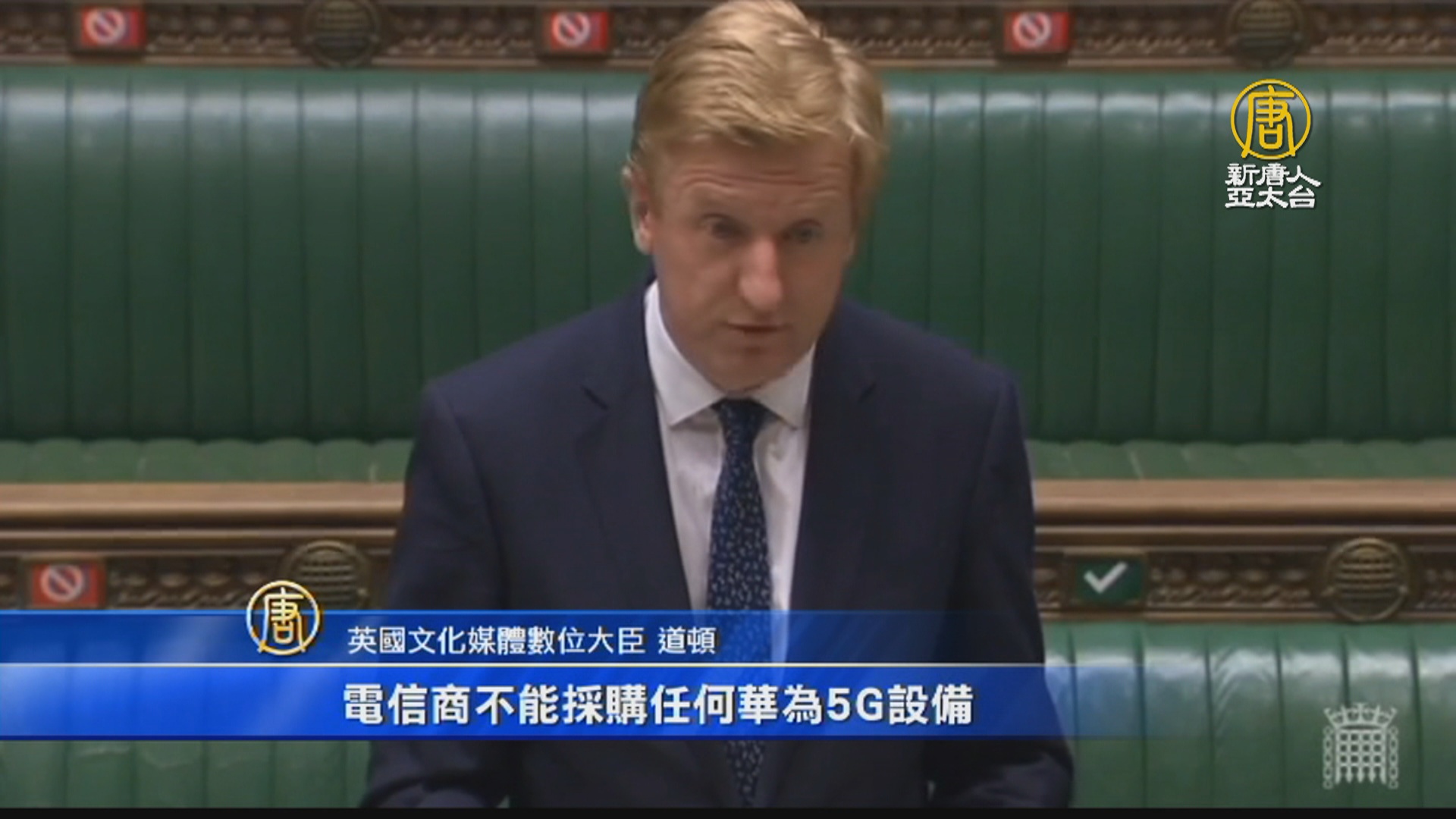 【新唐人亞太台 2020 年 07 月 14 日訊】再來看到,英國今晚台北時間七點半,宣布禁止華為設備參與5G建設。這是首相強生今天(14日)召開國家安全會議後,由文化與媒體大臣道頓宣布。電信商被禁止今年底後採購華為5G設備,還必須在2027年以前,從網路中全部撤換已經安裝的華為設備。