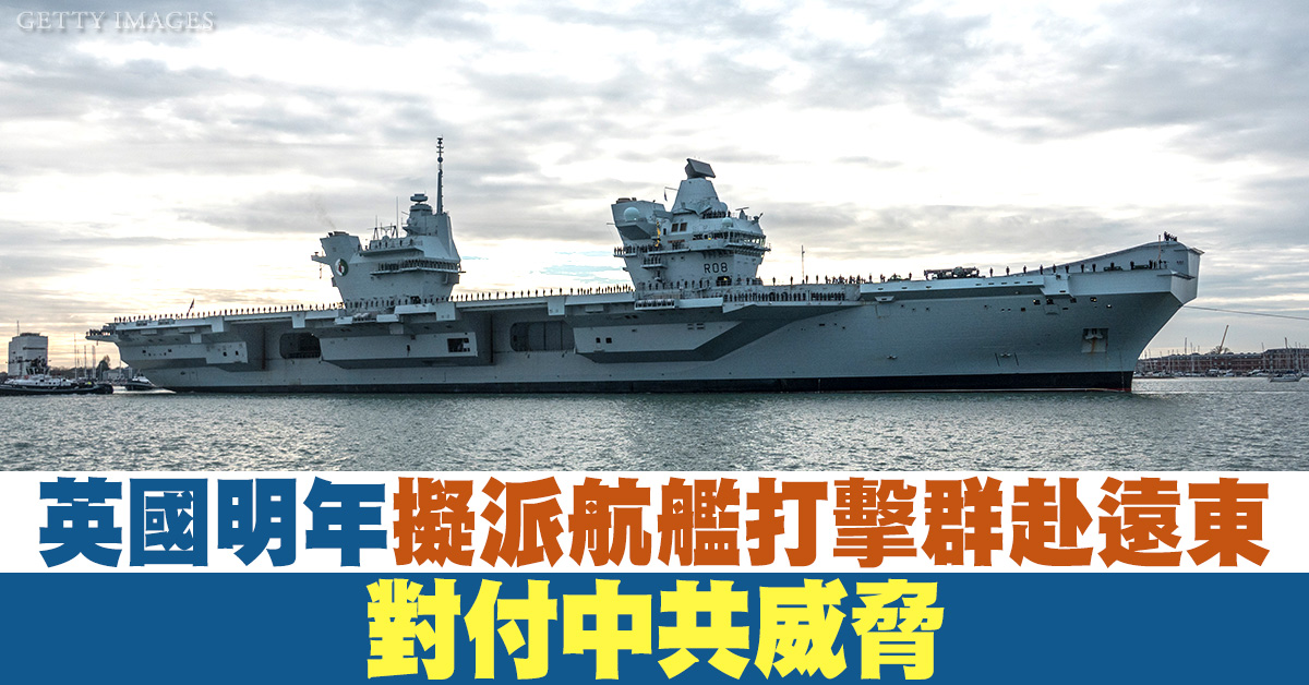 英國《泰晤士報》14日報導,英國軍方正計畫在明年初首度部署「伊麗莎白女王號」航空母艦打擊群至遠東地區,對付日益增加的中共威脅,屆時將與美國、日本等盟友展開聯合演習,穩定亞太局勢。
