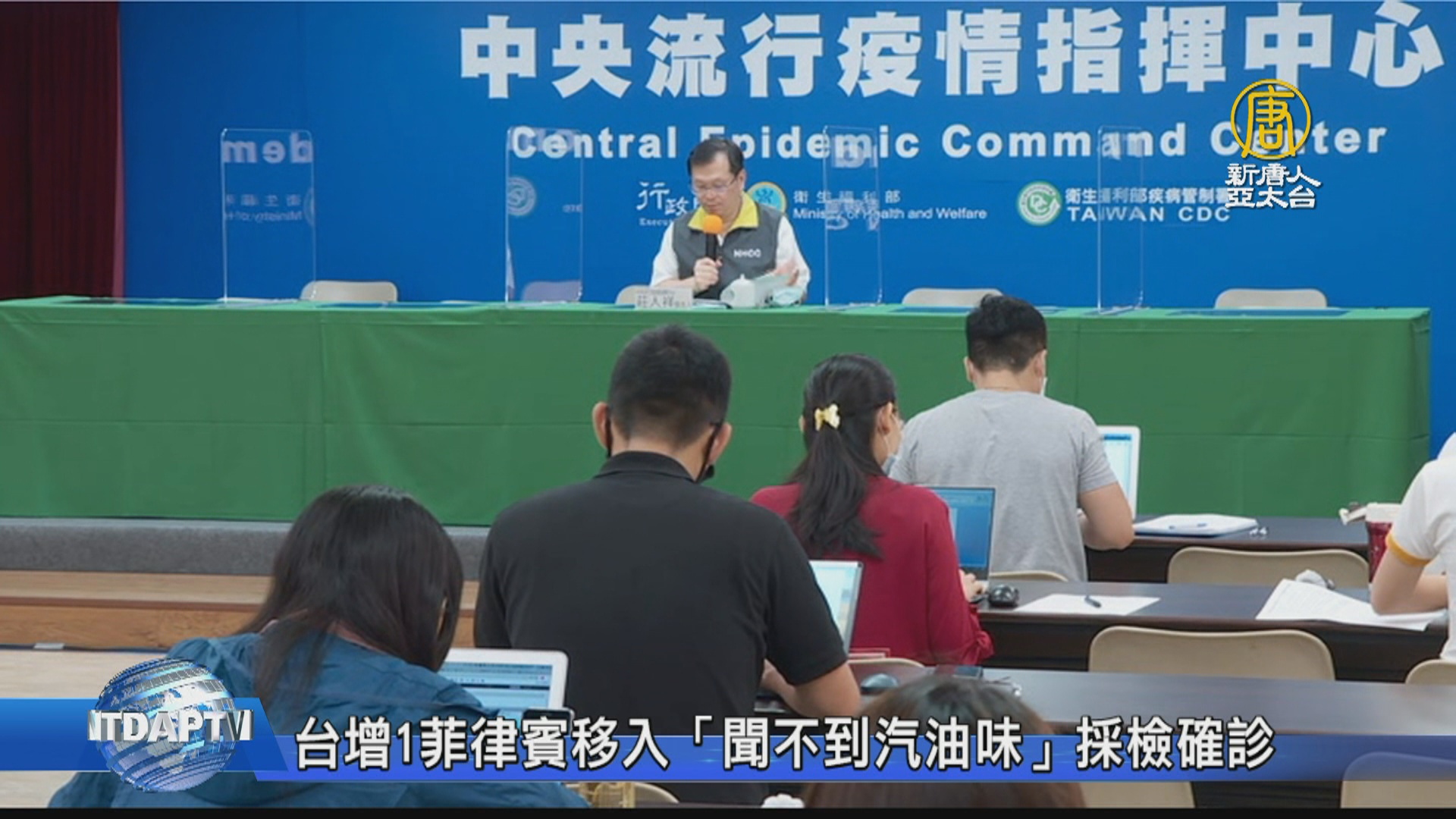 【新唐人亞太台 2020 年 07 月 16 日訊】中央流行疫情指揮中心公布,新增一名境外移入確診病例,今年1月下旬到菲律賓工作的30多歲女子,今年6月底在當地接受血清抗體檢驗,結果為陰性,但7月14號返回台灣時,卻發現聞不到汽油味,入境時主動通報,採檢後確診。