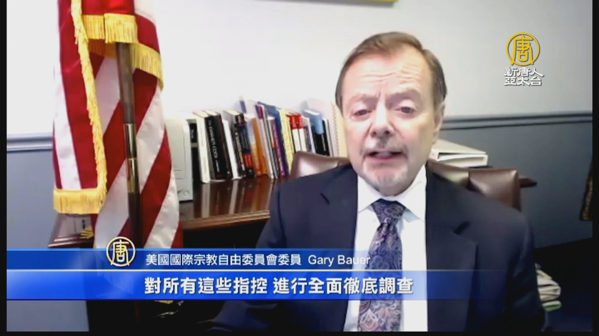 美國國際宗教自由委員會委員 Gary Bauer﹕「國際宗教自由委員會督促美國政府﹐對所有這些指控﹐進行全面徹底調查。」
