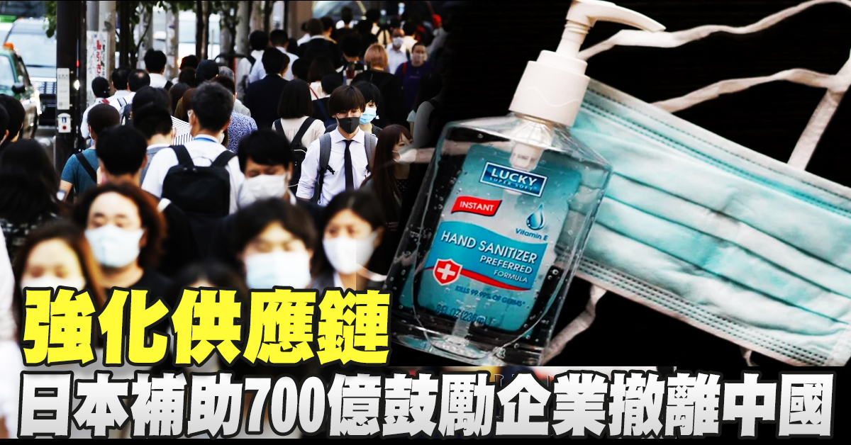 【新唐人亞太台 2020 年 07 月 17 日訊】全球疫情延燒,日本政府為了強化供應鏈,決定補助700億日圓,相當於195億新台幣,將生產線包括口罩、酒精消毒液以及汽車零件等,從中國大陸移回日本或東南亞國家;藉由分散生產據點,來因應當疫情擴大時,在中國的工廠供貨可能發生困難的情況