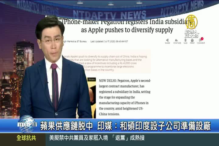 【新唐人亞太台 2020 年 07 月 17 日訊】中共肺炎疫情,重創全球經濟,加速產業鏈移出中國大陸。根據《印度經濟時報》,繼台灣緯創、鴻海之後,另一家蘋果供應鏈重要廠商和碩聯合科技,已經在印度當地註冊子公司,準備設廠。報導指出,根據知情人士表示,和碩正與印度多個省政府討論,尋找適當的土地設立工廠,然後進口生產機械設備在印度製造。不過對於這項消息,和碩和蘋果都拒絕評論。