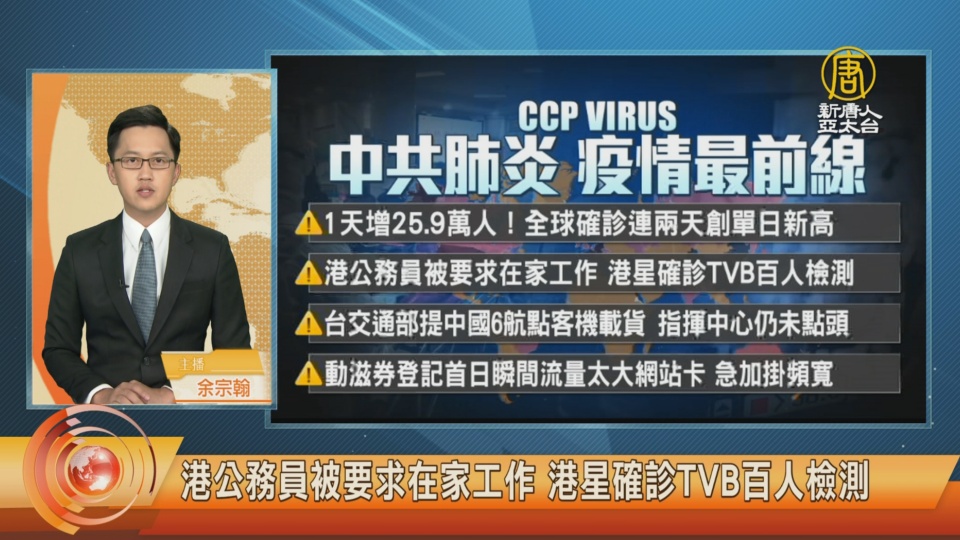 【新唐人亞太台 2020 年 07 月 20 日訊】午報頭條,先關心中共肺炎動態。1天增25.9萬人!全球確診連兩天創單日新高。香港公務員被要求在家工作,港星確診TVB百人檢測。台灣交通部提中國6航點客機載貨,指揮中心仍沒有點頭。台灣動滋券登記首日瞬間流量太大網站卡,急加掛頻寬。