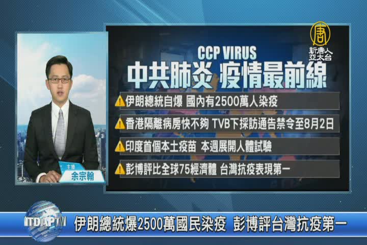 【新唐人亞太台 2020 年 07 月 21 日訊】再來關心,中共肺炎追蹤動態,伊朗總統自爆,國內有2500萬人染疫。香港隔離病房快不夠 ,TVB下採訪通告禁令至8月2日。印度首個本土疫苗 ,本週展開人體試驗。彭博評比全球75經濟體,台灣抗疫表現第一。