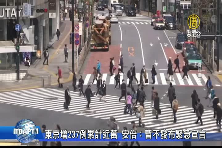【新唐人亞太台 2020 年 07 月 21 日訊】再來關心日本疫情,東京今天(21日)新增237例確診,時隔三天再度突破200例,也是東京連續13天單日確診數破百,目前東京累計確診病例已經接近1萬例,而日本全境死亡人數也在昨天(20日)突破一千人。對於是否再次發布緊急事態宣言,首相安倍也在今天表示,目前不考慮。