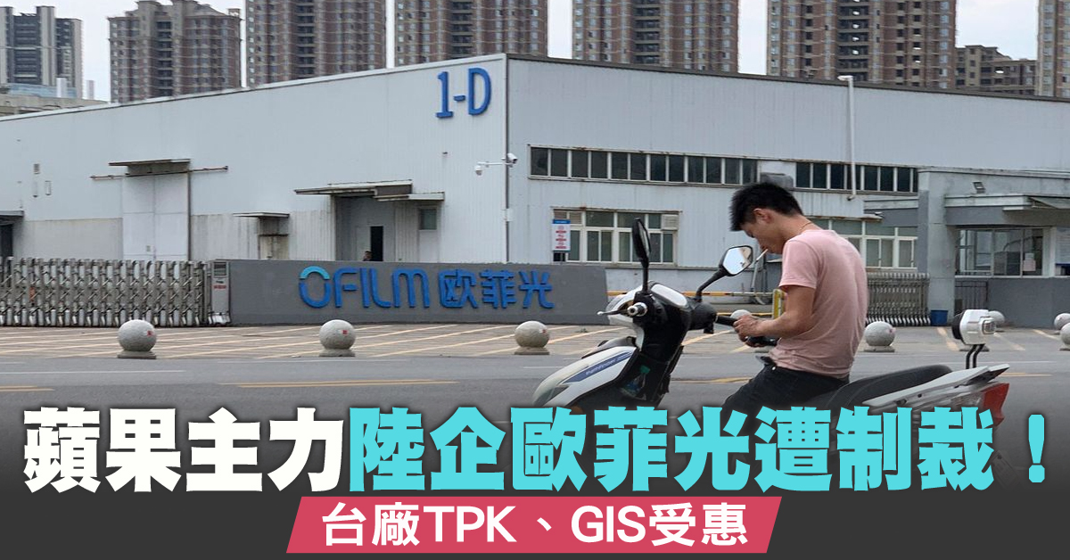 蘋果主力陸企歐菲光遭制裁!台廠TPK、GIS受惠