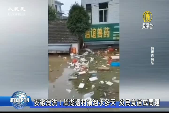 【新唐人亞太台 2020 年 07 月 25 日訊】歡迎回到新聞現場,中國連日暴雨,面臨長江、淮河、巢湖三線抗洪壓力,安徽省「捨小家為大家」開啟蓄洪。安徽巢湖流域,多處開閘洩洪,導致附近多個村鎮被淹,很多店家沒得到通知,來不及收拾,損失慘重。目前巢湖水位超過歷史最高水位,環湖多個村鎮幾天來仍泡在水中,災民食宿都成問題。