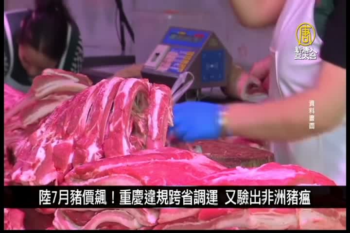今年7月份,大陸豬肉批發價格同比上漲了101.92%,達到了47.75元人民幣/公斤。7月份是大陸豬肉銷售淡季,豬肉價格逆勢上漲讓商家和賣家頻頻叫苦。但與此同時,重慶市江津區一批自其他省份違規載運的生豬,又驗出非洲豬瘟疫情。該批生豬24頭,有4頭發病、1頭病死,當局進行撲殺處理。