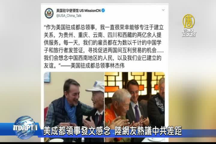 【新唐人亞太台 2020 年 07 月 28 日訊】中共要求美國駐成都總領館,到7月27號關閉。總領事林傑偉通過推文,表示會想念中國西南地區的人民,這也引發中國網友的熱議。