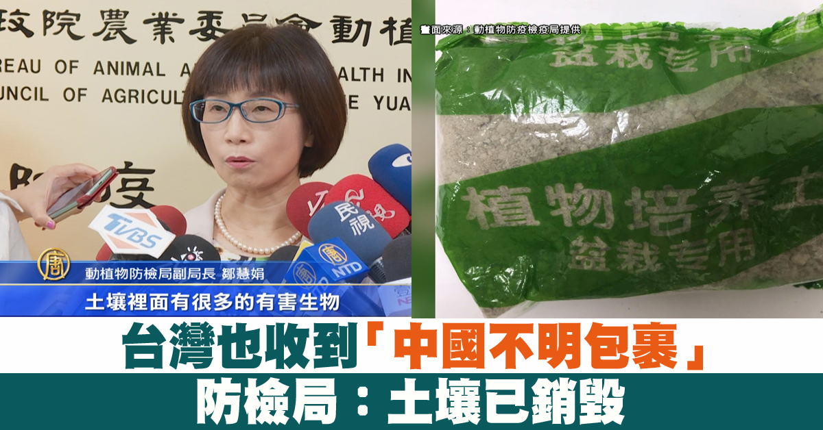 台灣也收到「中國不明包裹」防檢局:土壤已銷毀