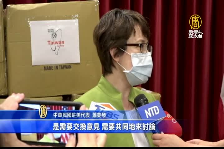 【新唐人亞太台 2020 年 07 月 29 日訊】週二,新任台灣駐美代表蕭美琴在華府首次公開亮相,主持向「美國退伍軍團協會」捐贈口罩儀式。聯邦眾議員約霍出席儀式並表達支持。