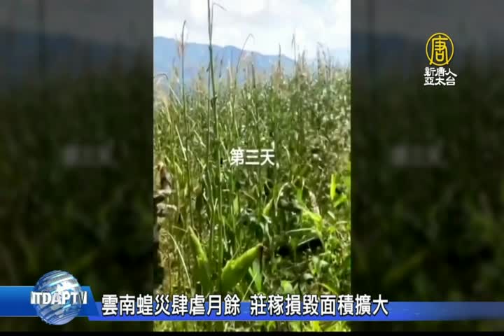 【新唐人亞太台 2020 年 07 月 30 日訊】接著來關注中國的消息。今年大陸多地蝗災,而雲南蝗災已肆虐一個多月,農作物受災面積持續擴大,根據資料記載,黃脊竹蝗是中國本土蝗蟲之一,早已肆虐多地。