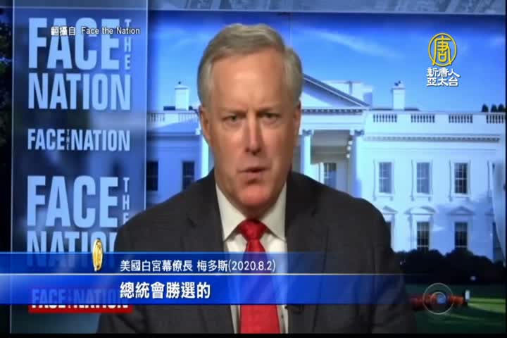【新唐人亞太台 2020 年 08 月 03 日訊】在過三個月就是美國總統大選。先前,美國總統川普曾提出,要將11月的大選往後延。週日,美國白宮幕僚長梅多斯接受電視台專訪時表示,美國將如期在11月3日舉行大選。
