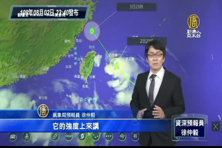 2019-08-29 09:13:19歡迎您收看8月29日的早安新唐人,我是余宗翰,先來帶您關心今天的天氣情況。氣象局表示,從今天開始,一直到星期六,受楊柳颱風外圍環流影響,東半部及南台灣,將出現短暫陣雨或雷雨,尤其週五、週六水氣最多。另外,颱風「玲玲」可能會在下週生成,但是對台灣的影響,還有待後續觀察。帶您一起來看到國際媒體重要訊息。