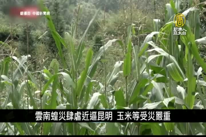 近日,黃脊竹蝗肆虐雲南,當地4個州(市)9個縣47個鄉鎮受災,玉米等植物受災嚴重。目前,雲南省正在遭遇蝗蟲害的地區距離昆明僅100多公里。有大紀元文章分析指出,目前,瘟疫、南方水患、北方乾旱等極端天氣肆虐中華大地,13個主要糧食產區受到極大影響,過半已廢,中國糧荒危機並非空穴來風。