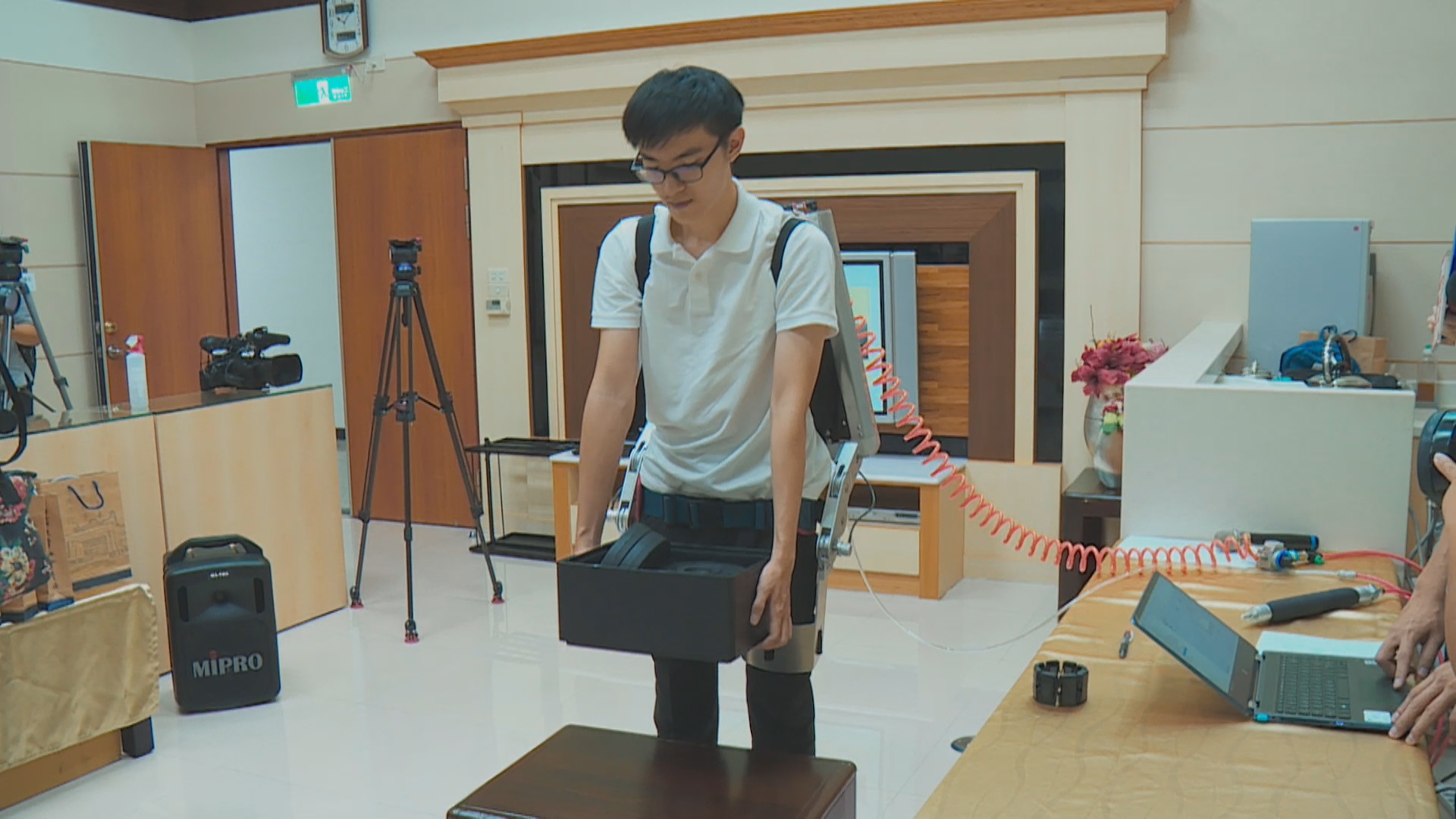 輕輕鬆鬆抬起40公斤重物,重覆多次也不累,「柔性腰部助力外骨骼」結合人的聰明與機器的動力,一般人只要穿上它,就可以大幅提昇勞動耐力,並減輕腰部疲勞及職業傷害。