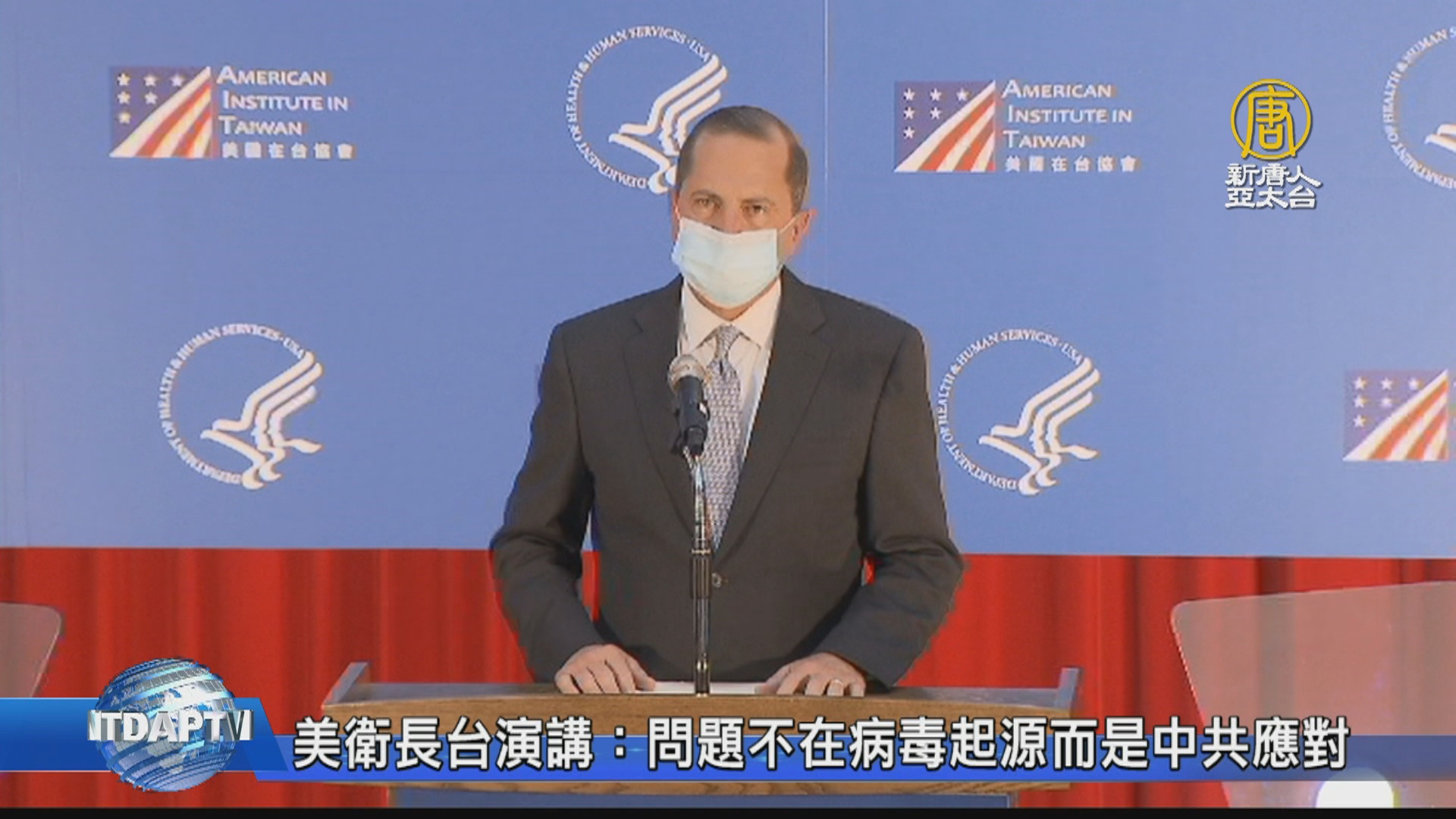 【新唐人亞太台 2020 年 08 月 12 日訊】美國衛生部長阿薩爾,昨天(11日)在台大公衛進行演講,大力稱讚台灣防疫,同時也批評中共隱瞞疫情,他表示問題不在於病毒來自哪裡,而是在於國家的應對方式。