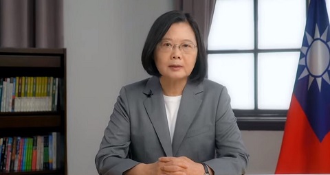 中華民國總統蔡英文台灣時間12日晚間9時在美國智庫「哈德遜研究所」與「美國進步中心」合辦的視訊會議發表演說。(視頻截圖)