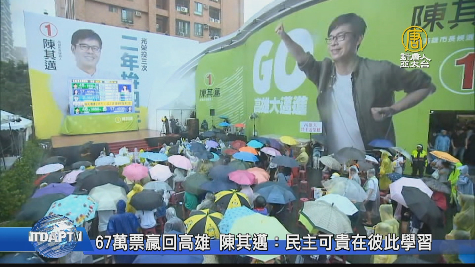 【新唐人亞太台 2020 年 08 月 15 日訊】歡迎回來。高雄市長補選,民進黨陳其邁以7成得票率,拿下67萬1804票勝選。陳其邁感性發表勝選感言,表示:台灣民主的可貴,就是在民主的過程中,彼此包容學習。