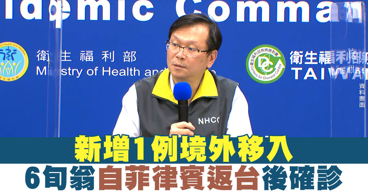 新增1例境外移入 6旬翁自菲律賓返台後確診
