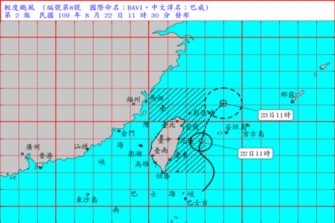 日本氣象廳今(22)日上午宣布「巴威」颱風正式生成,目前颱風位置在與那國島北北東約100km,將朝北北東方向行進。氣象局稍早對11縣市發布大雨特報,提醒民眾注意瞬間大雨、雷擊及強陣風。尤其是中南部地區(含山區)雨勢最為顯著,東北部、東半部海域及恆春半島、蘭嶼、綠島等地,風浪可能有較大變化,提醒避免從事海上活動。