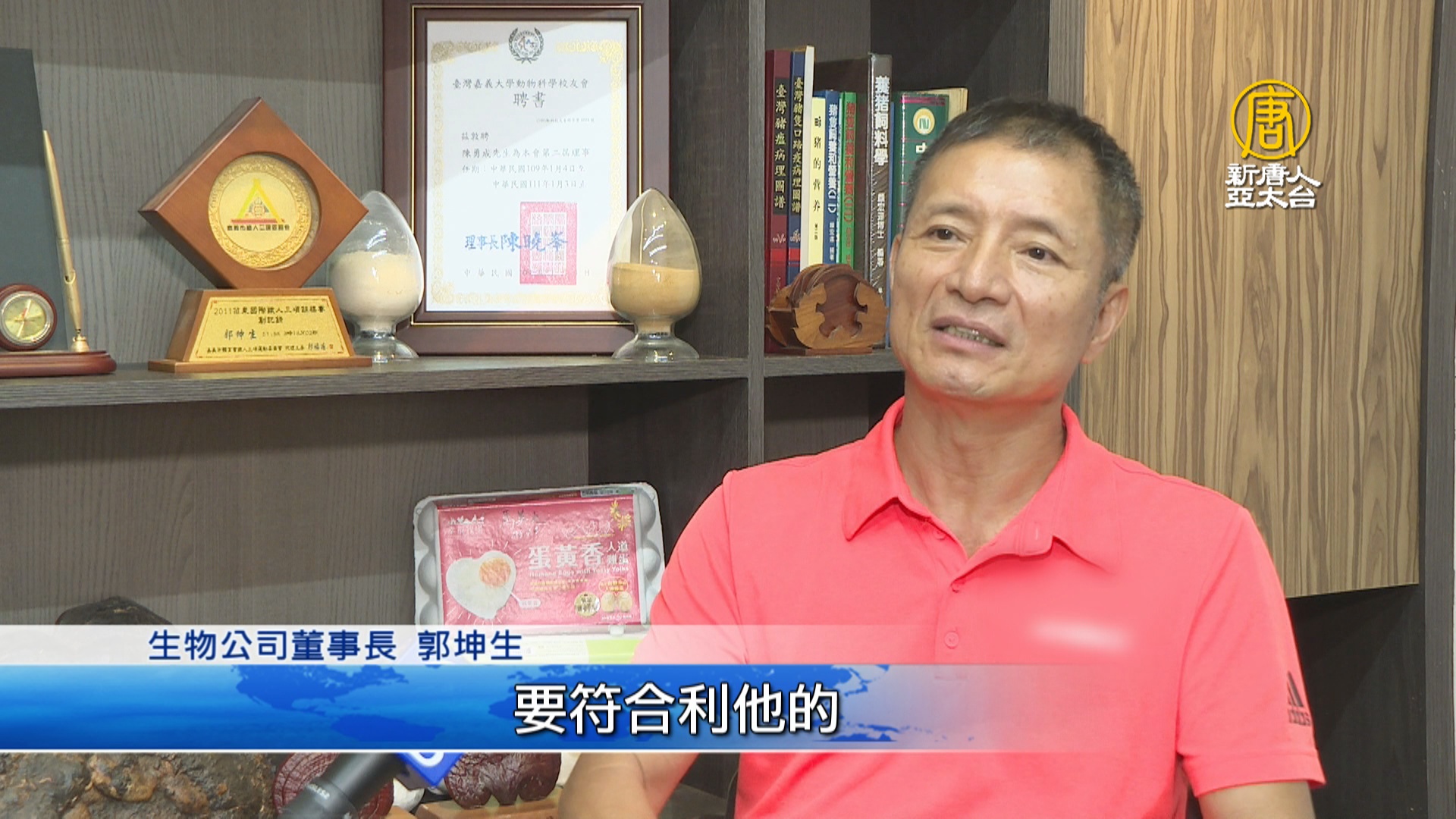 【新唐人亞太台 2020 年 08 月 28 日訊】消費者食安意識抬頭,畜牧業減用預防性投藥,已是國際趨勢。帶您看到,台灣一家近20年的生物公司,花費10多年,從靈芝上找到珍貴成分,董事長郭坤生率領團隊,幫助許多畜牧場,降低動物患病率,在亞洲知名度大開。其實,郭坤生,曾罹患日本腦炎,但他並沒有因此放棄自我。在父親的鼓勵下,選讀食品科系,進一步打造利他的產業模式。跟著新聞鏡頭,帶您了解。